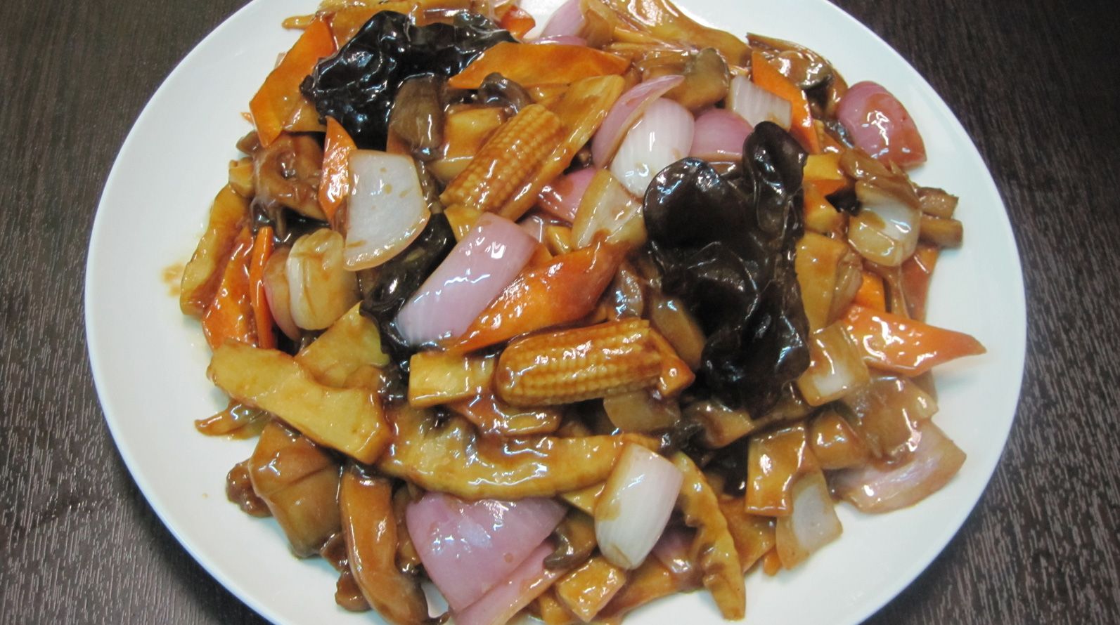 Με κινέζικα μανιτάρια, μπαμπού, κρεμμύδι και καρότο