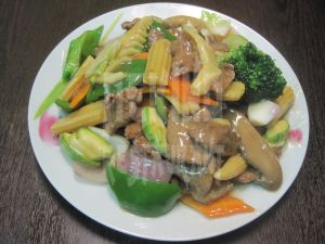 69. Μοσχάρι με Κινέζικα Μανιτάρια και Μπαμπού
